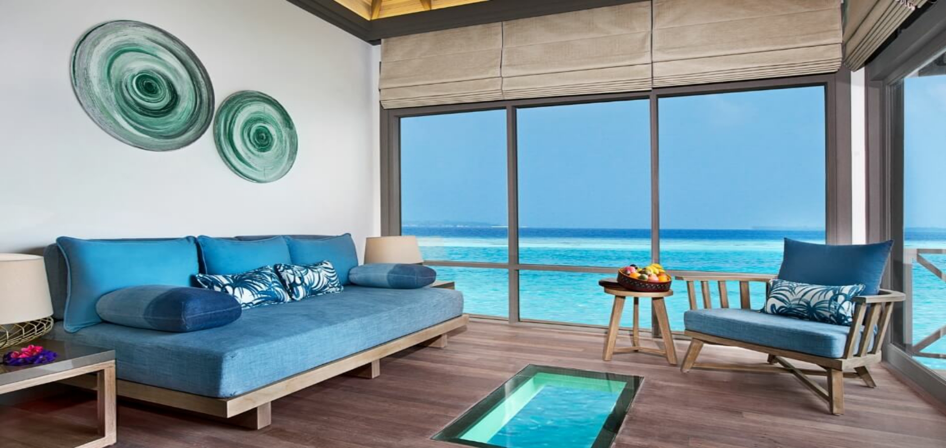 Be connected with nature as you unwind in the luxurious interiors of this spectacular Maldives water villas. With thoughtful features like glass-panel floors, you are blessed with views of the ocean life from the villa. Of course, you can step down to the lagoon from the sundeck for a closer inspection of these shallow-water dwellers.